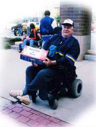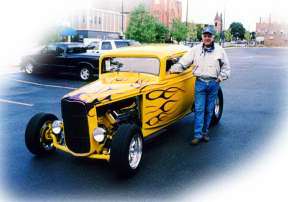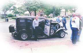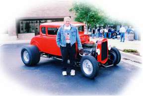 Another interesting citizen at the first Jackson Cruise Night on 2001 was Jan Krieger. Jan gets our vote for the most devoted father at this event. Printed on the box he holds, are the words "Australia or Bust!" Further investigation revealed that Jan's son, Joshua Krieger, plans to visit Australia as part of a "People to People" program. (Read more about it.) Joshua and Jan have several fundraisers to pay for this upcoming trip. You can help! Call Joshua to make donations. (517) 784-0932 |