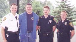 (from left) Captain Jackson, with Albion's Mayor Bill Wheaton, Police Chief L.J. McKeown, and Sgt. Gerry McQueen. |