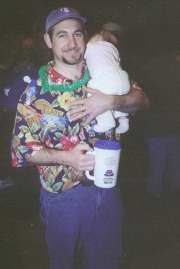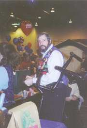 This fellow is an expert in balloon sculpture. He learned this skill after extensive training at the Institute of Latex Origami in Cincinnati. |