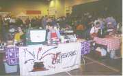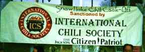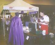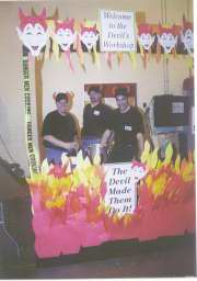We don't know who these fellows really are but the sign at the top of the booth says "Welcome to the Devil's Workshop. We suspect that these are really church going angels in disguise who have made very good chili and realize that angel costumes would not influence the judges of a chili contest as well as their devil costumes. |