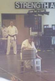 We watched in awe as this Karate expert cut through a stack of cement blocks using nothing but his bare hands. |
