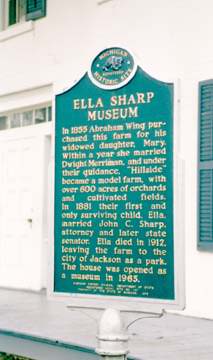 ![]() In 1855 Abraham Wing purchased this farm for his widowed daughter, Mary. Within a year she married Dwight Merriman, and under her guidance, "Hillside" became a model farm, with over 600 acres of orchards and cultivated fields. In 1881 their first and only surviving child, Ella, married John C. Sharp, attorney and later state senator. Ella died in 1912, leaving the farm to the city of Jackson as a park. The house was opened as a museum in 1965. |
