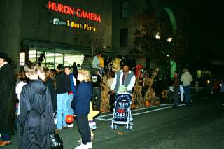 There was a delightful display by Streeter Hardware just in front of Huron Camera Shop. The Model T car was decorated with corn shucks, pumpkins, farmers and other old time designs. Note: the photos you see here were helped immensely with advice from Huron Camera Shop about night time photography. These photos were then also digitially enhanced to show up the darker areas. |