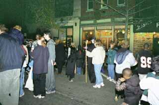 Not to be daunted by a lack of candy at some of the stations, the families strolled and visited the strange looking creatures that roamed Michigan Avenue that fateful Tuesday evening. |
