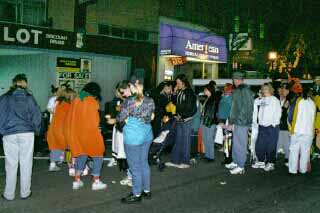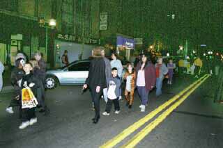 Photo #1 While appearing to be a typical American family strolling through downtown Jackson in the evening, these individuals were actually planning to haunt unsuspecting car owners who planned to give candy to a few children on the evening of October 31. |