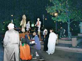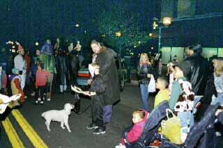 Because of the unexpected large crowd, the poor hungry goblins had to seek far and wide to get a full bag of candy this evening. Next year, candy givers are urged to bring more candy, at least a bushelful per car trunk. This request was issued by general consensus by the younger members of the crowd. |